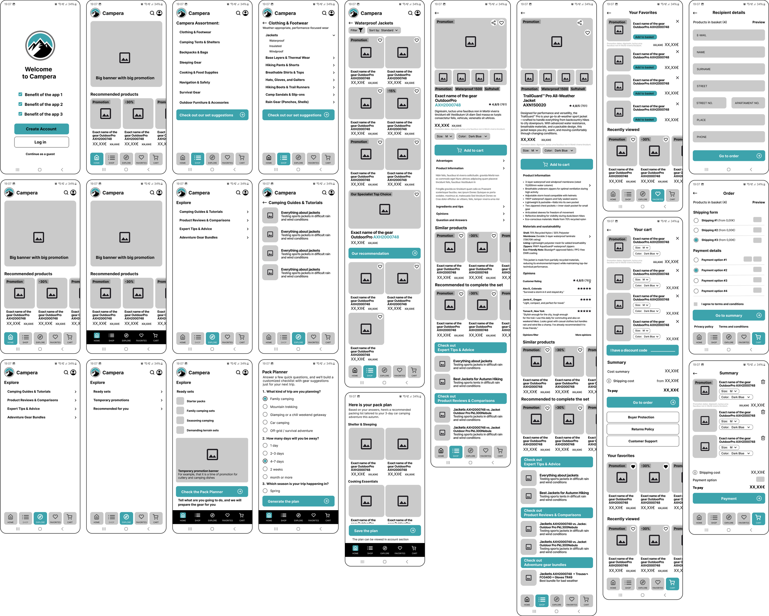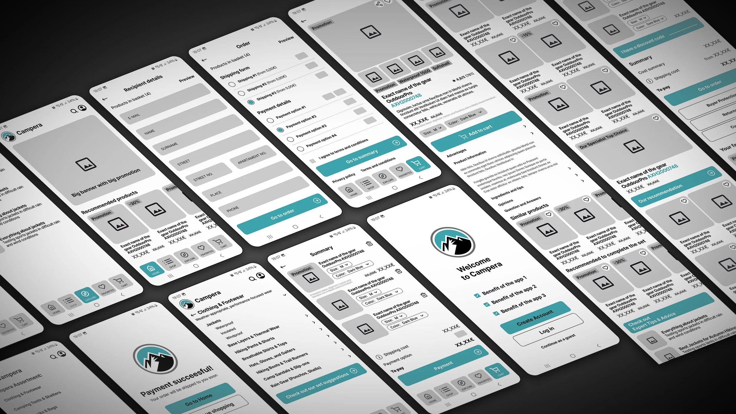 Designing the Campera Sport Gear E-comerce turned out to be a highly time-consuming and iterative process. The project required countless rounds of refinements and adjustments — every stage revealed new opportunities to improve the experience, which meant constantly revisiting earlier ideas and implementing changes.