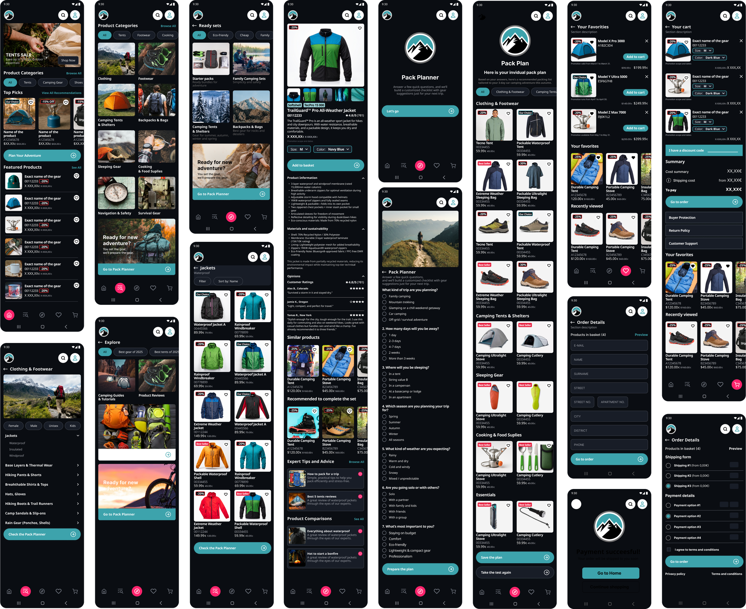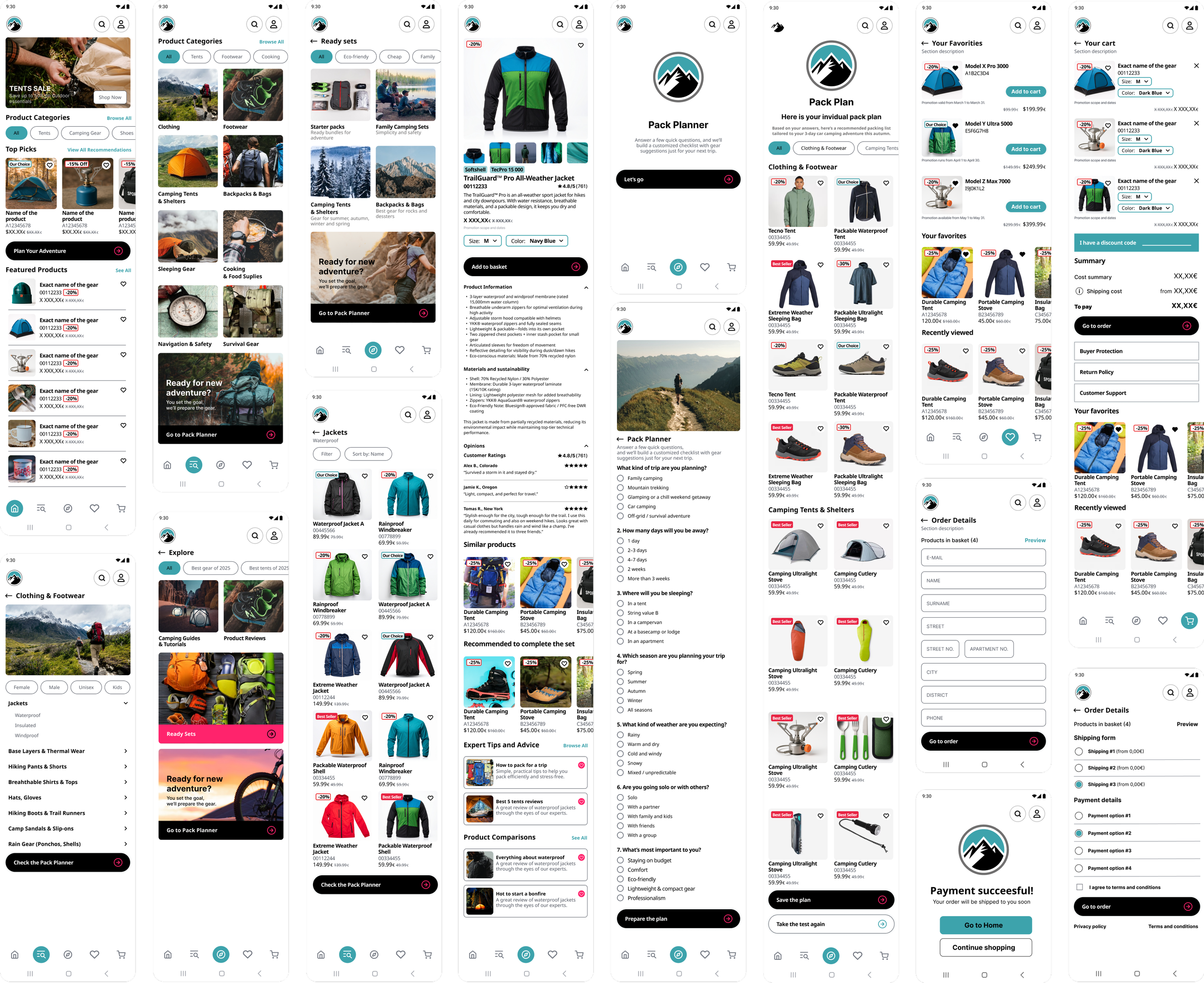 Most camping gear apps and websites are either too technical for beginners or too generic to serve serious outdoor enthusiasts. Users often struggle with overwhelming product choices, unclear specifications, and uninspiring shopping experiences. The core challenge was to design a platform that speaks to both seasoned adventurers and casual campers, making it easy to find the right gear without sacrificing performance, style, or usability.